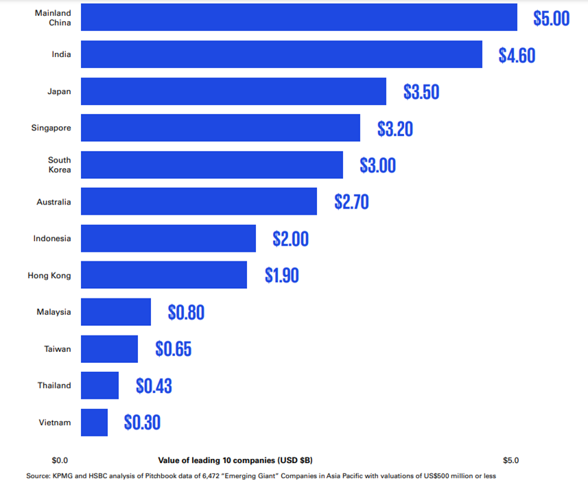 The combined value of APAC’s leading companies in each of the twelve markets: Figures in $US billion
