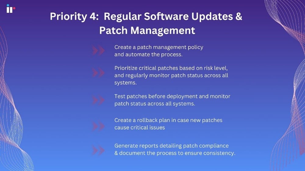 Additionally, it’s vital to test patches before deployment and to monitor patch status across all systems – and to have a rollback plan in case new patches cause critical issues.