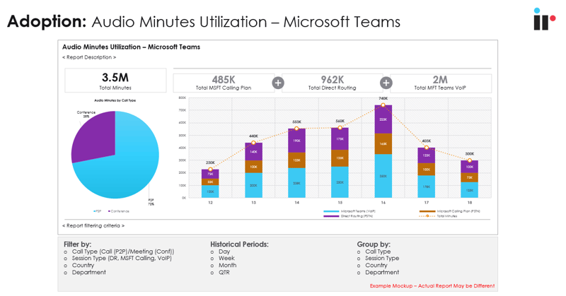 Another area where IR Collaborate offers valuable insights for Microsoft Teams is in understanding the historical utilization of P2P and conferencing tools. You can get insights into: