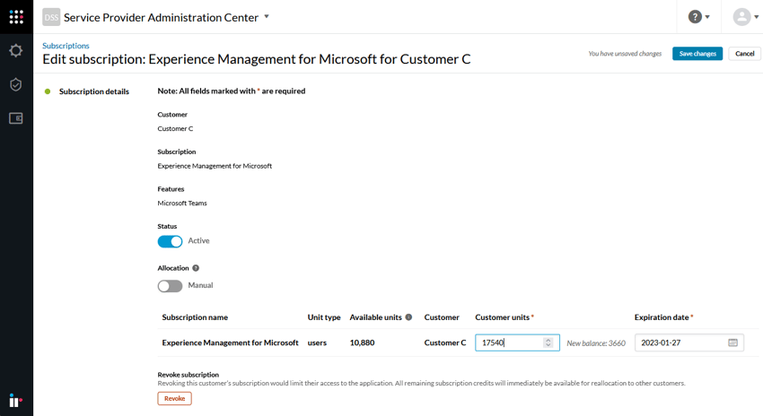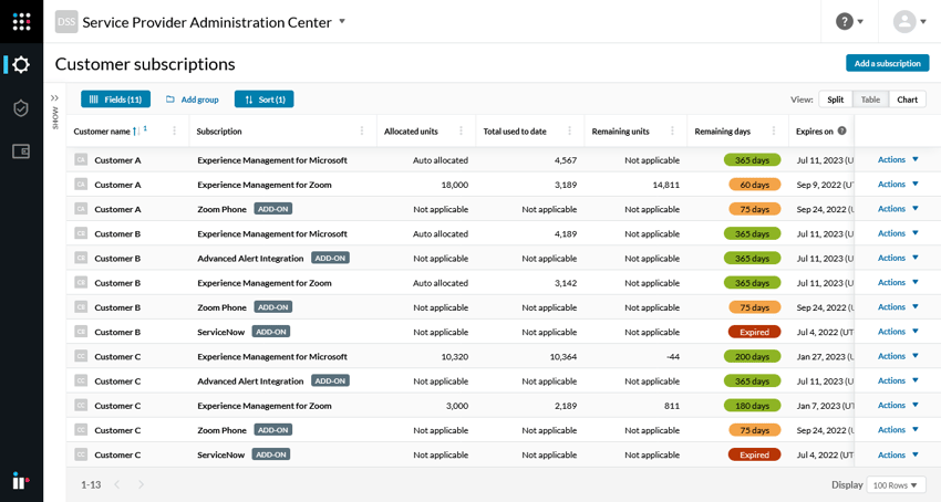 Service Provider Customers also have a Customer Subscriptions page where they can manage all their customer subscriptions. We have updated the screen with the ‘remaining days' field with visual alarms and an add-on badge for add-on subscriptions allocated to your customers. On this page, you can easily differentiate whether you have manually allocated or auto allocated the licenses to your customers.