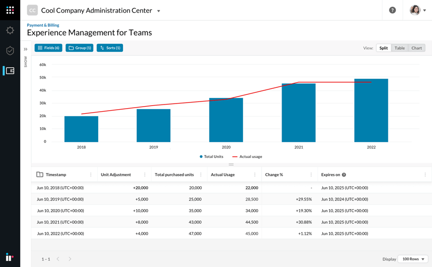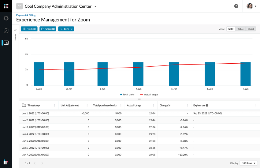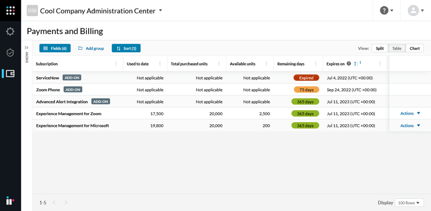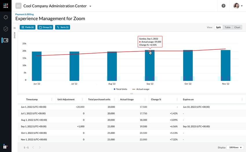 The breakdown of these metrics will now be visible from the Payments and Billing page for administrators to see so that they can clearly understand how the licenses are being used and when they will expire. In addition, if the Cool Company (as they are so cool!) has another 20,000 Microsoft Teams licenses and 19,800 of them are used in that month, admins can now easily see these trends over a period for various UCaaS tools in our platform.