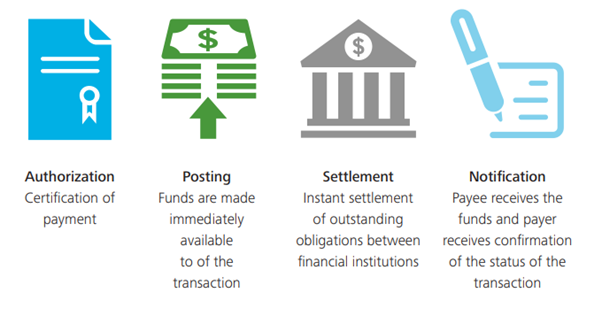 Real-time payment systems offer instant, 24/7 secure interbank electronic funds transfers that can be initiated through smart phones, tablets, digital wallets and on the internet.