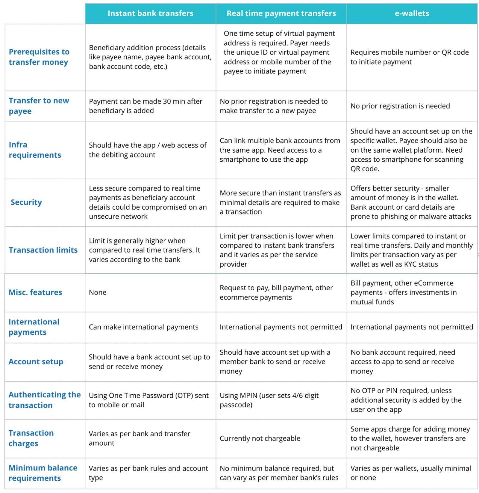 - Real time payment (RTP) transfers from one bank account to another using an alias like a mobile number or a unique ID