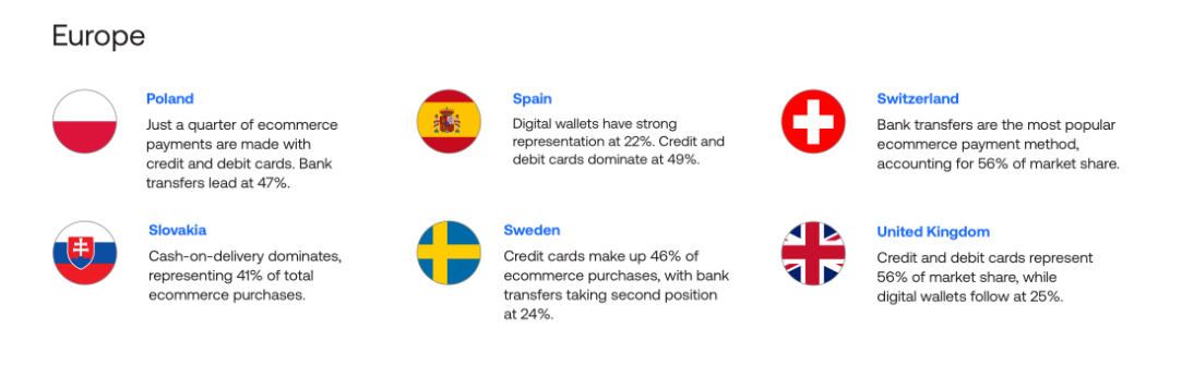 Outside of North America, for example, international credit cards (e.g., Visa, Mastercard, Amex) are not always the most used payment methods. Even throughout Europe, different countries have different payment preferences. And in China, only a small percentage of shoppers pay with international credit cards.