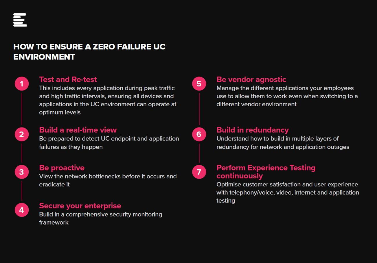 It has become important to build a UC monitoring framework to ensure that every experience for the employee whether a call, a group meeting, group brainstorming session, presentation or webinar is handled well without any disruption.