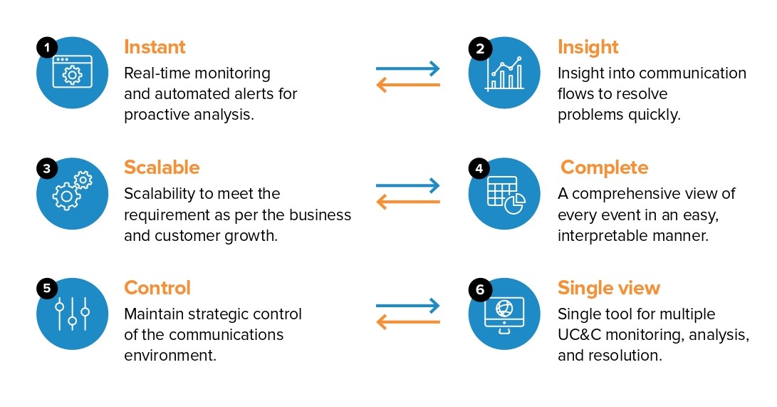 Real-time visibility into each UC&C user’s experience, and actionable performance information for faster issue resolution. -