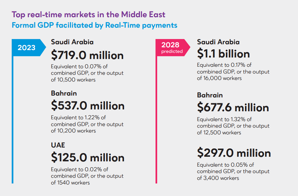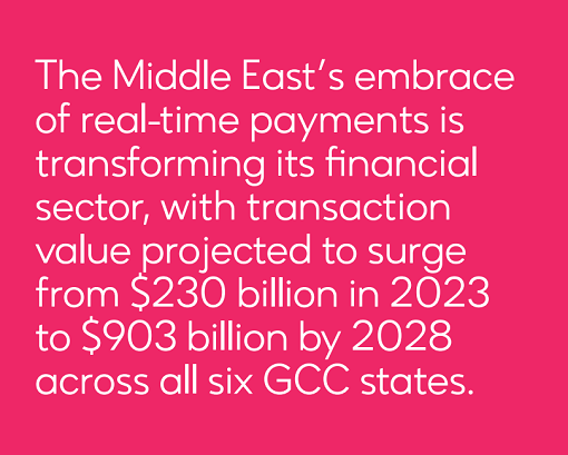 With all six GCC member states now running real-time payment programs, transaction value in the Middle East is projected to rise from US$230 billion in 2023 to US$903 billion by 2028.