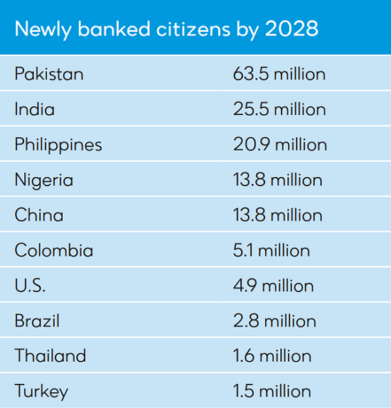 Leveraging data from 28 countries, a report from ACI Worldwide reveals that by 2028, an expected 167.2 million people previously excluded from the financial system worldwide will no longer be unbanked.
