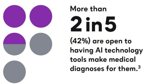 - More than 2 in 5 (42%) are open to having AI technology tools make medical diagnoses for them.