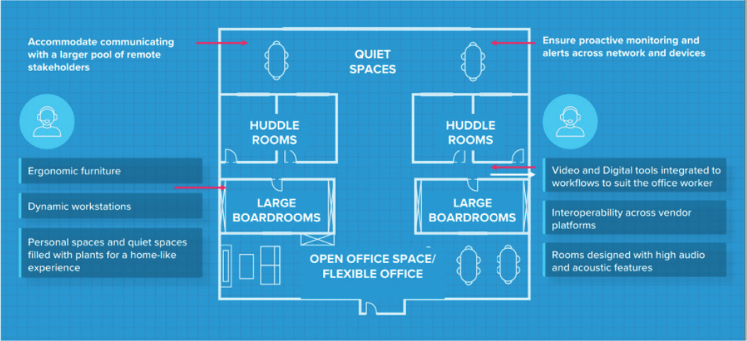 As a result, organizations are adapting their offices, with a focus on driving a seamless user experience, using the right technology for each individual setting. Here’s what’s happening in the quest to make the ‘new’ office space fit for purpose: