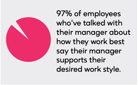 | 51% | Want to choose their work location — whether home, office or a shared space |